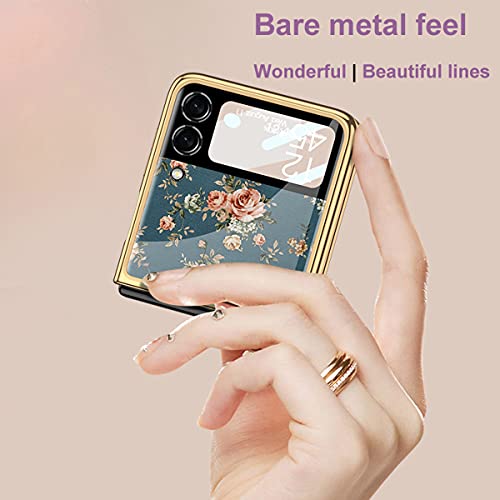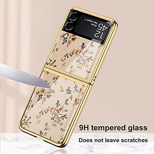 COQUE Custodia Galaxy Z Flip 3 5G,Custodia per Cellulare con Fiori Colorati in Vetro temperato 9H,Cover Pieghevole per Samsung Galaxy Z Flip 3 5G-fiore2