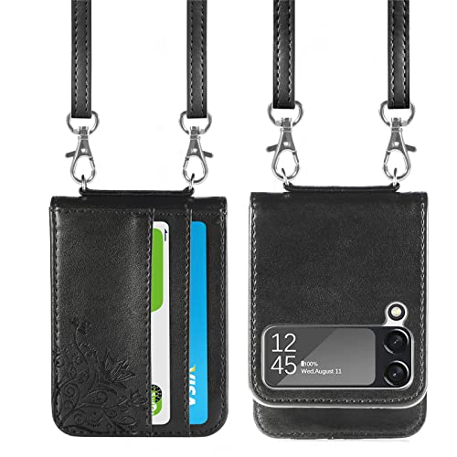 COQUE Custodia Galaxy Z Flip 3 5G, Multi-slot sottile con custodia protettiva a corda lunga a tracolla, Cover pieghevole per telefono per Samsung Galaxy Z Flip 3 5G-Nero