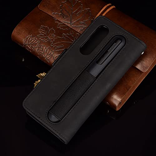 COQUE Custodia per Galaxy Z Fold 3 5G, custodia per biglietti da visita multi-slot con pennino per la raccolta del telefono cellulare, custodia pieghevole per Samsung Galaxy Z Fold 3 5G, colore: nero