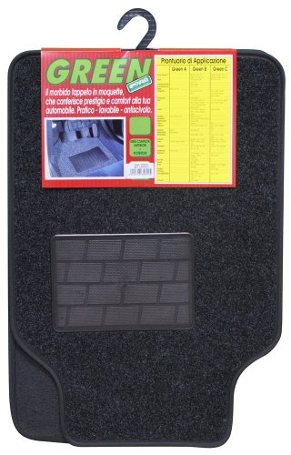 Set completo di tappeti economici in moquette di discreta qualità. disponibili nella tinta antracite che ben si abbina a qualsiasi interno d'auto. buono il grado di finitura con bordatura e tallonette neri.