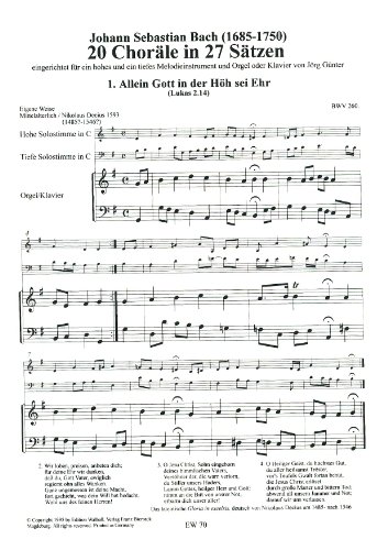 20 coralli in 27 frasi per uno strumento alto e uno profondo, organi e pianoforte (partizione e voce).