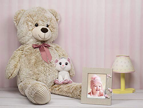 Corcnice Portafoto da Tavolo 13x18 Baby, tessuto lino ecru con applicazione decorazione Baby rosa