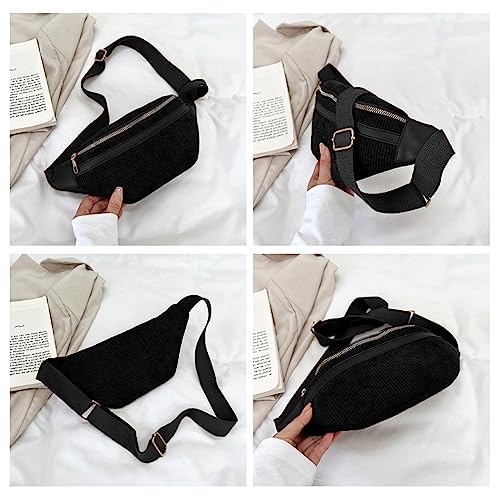 Cord Bum Borse Marsupio,Tasca Sul Petto Fanny Vita Borse Borsa a Tracolla Per Donne e Ragazze, Nero Per Sport, Viaggi, Corsa, Scuola, Bicicletta, Fanny Pack Per Donne, Ragazzi, Adolescenti