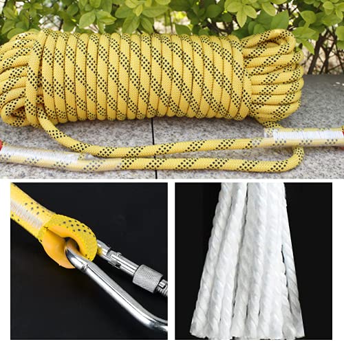 Corda ausiliaria per Arrampicata, Corda di fuga per arrampicata all'aperto, diametro 10 mm, corda di sopravvivenza di sicurezza con 2 Moschettone(gialla 30 m)