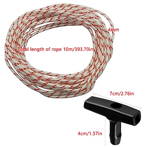 Corda di avviamento per motore a benzina tosaerba, cavo in nylon, con 3 maniglie per tosaerba, per motoseghe, attrezzi da giardino tosaerba (10 m*44 mm)