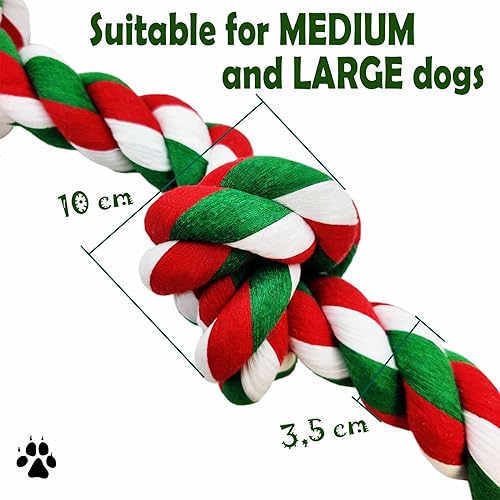 Corda per cani giochi per cani gioco cane indistruttibile Cotone a cinque nodi Natale Giocattolo da masticare Gioco interattivo Tiro alla fune Adatto per cani di taglia media e grande 90 cm 900 g