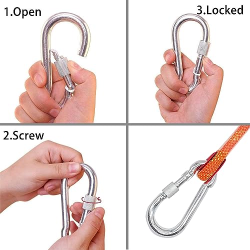 QUALITÀ PREMIUM: La corda è realizzata in materiale poliestere ad alta resistenza. La struttura multi-core rende la corda più resistente all'usura. Il moschettone in acciaio inossidabile aggiornato è più liscio quando attorcigliato e il gancio interno rende la fibbia più stretta. La copertura anti-abrasione in acciaio inossidabile non è facile da staccare.