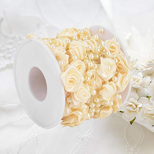 Corda di Ghirlanda di Perline di Perle Artificiali di Filo di Rosa da 10 m/Rotolo da 3 Mm, Decorazione di Nozze Fai da Te, Cristallo di Perline Artificiali (Beige)