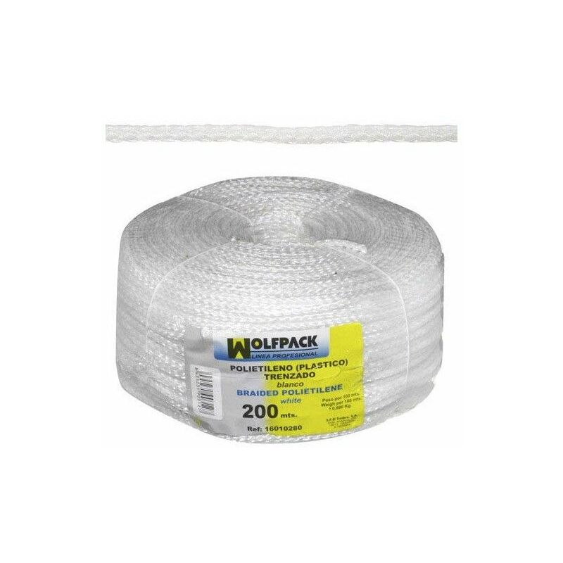 Corda/corda intrecciata in plastica bianca. -RIGOROSAMENTE PER USO DOMESTICO. NON DEVE ESSERE UTILIZZATA NÉ PER SOLLEVARE QUALSIASI TIPO DI CARICO O PERSONE, NÉ PER TRASCINARE O TRATTENERE QUALSIASI CARICO. - Bobina da 200 metri. - Corda in plastica intrecciata con anima interna.