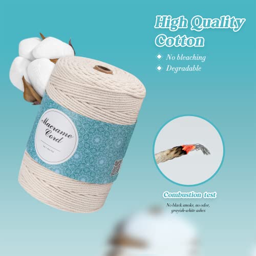 Forte e durevole filato macramè da 3 mm: questo filato macramè è è intrecciato con 4 fili di cotone in un filo di cotone con un diametro di 3 mm, in modo da avere una maggiore resistenza e durata. Adatto per arazzi da parete in macramè, decorazione per soggiorno, cestini da giardino intrecciati per sostenere i vostri robusti vasi di fiori.