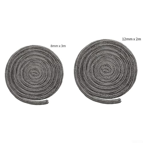 Confezione completa: la confezione include 1 guarnizione in fibra di vetro, disponibile nelle dimensioni di 8 mm x 300 cm e 12 mm x 2 m, fornendo ampie opzioni per diverse dimensioni e esigenze della porta della stufa.