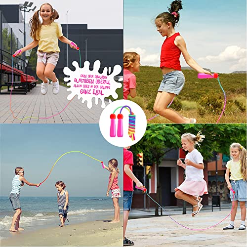 Facile regolazione della lunghezza: la corda per saltare per bambini è lunga 2,4 m ed è adatta per bambini e bambine dai 4 ai 10 anni. È possibile regolarla se la si tiene per troppo tempo. Basta tirare la corda dalla parte inferiore del manico e regolare la lunghezza desiderata.