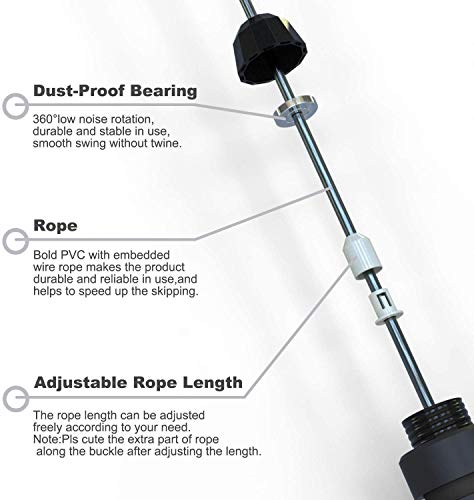 Alta qualità con cuscinetti a sfera: la corda in acciaio flessibile con rivestimento protettivo in PVC non si piega e non si attorciglia. Con cuscinetti a sfera scorrevoli per la massima velocità senza grovigli. Inoltre, il design elegante.