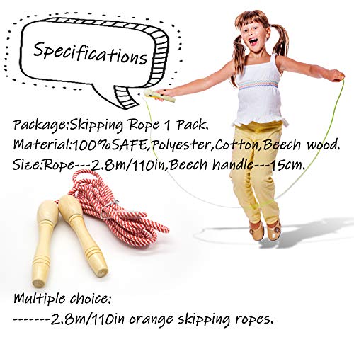 【Specifiche del prodotto】 Materiale: 100% sicuro, fibra di poliestere, cotone, legno di faggio. Dimensioni: corda - 2,8 m / 110 pollici, manico in legno - 15 cm.