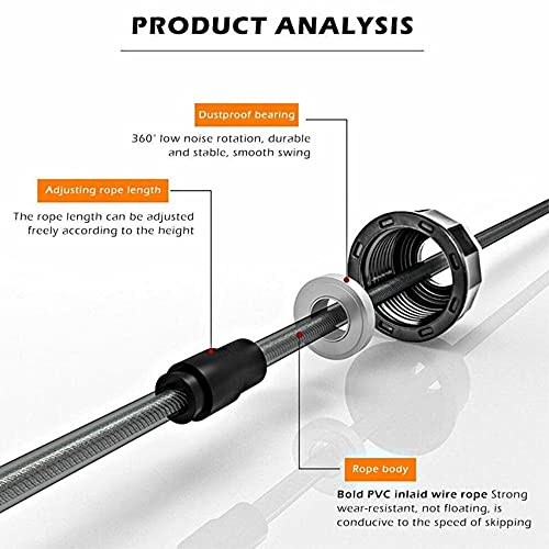 - Il cavo flessibile in acciaio con custodia protettiva non si attorciglierà e non si consuma. La lunghezza regolabile consente di regolare la lunghezza della corda per saltare in base alle proprie esigenze.