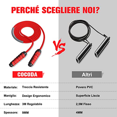 【Perfetto per il fitness sportivo】Lo Skipping Rock è un buon esercizio per la resistenza, la velocità e la coordinazione fisica migliorando la tensione muscolare in tutto il corpo. Viene fornito con una borsa da trasporto, ideale per l'allenamento, esercizi di salto, boxe, allenamento di velocità, ecc.