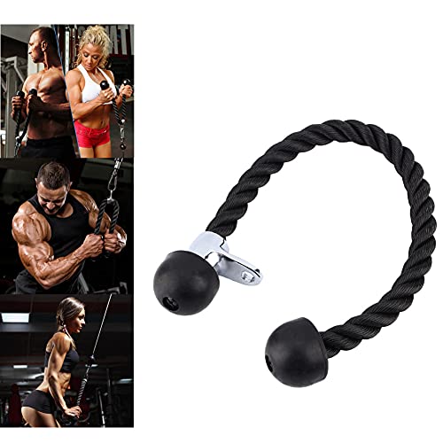 Corda Tricipiti Palestra Tricep Rope Nylon Manici Antiscivolo per Palestra O Casa 70 Cm Nero, Corda per Tricipiti con Tappi