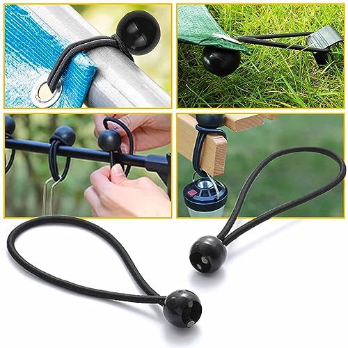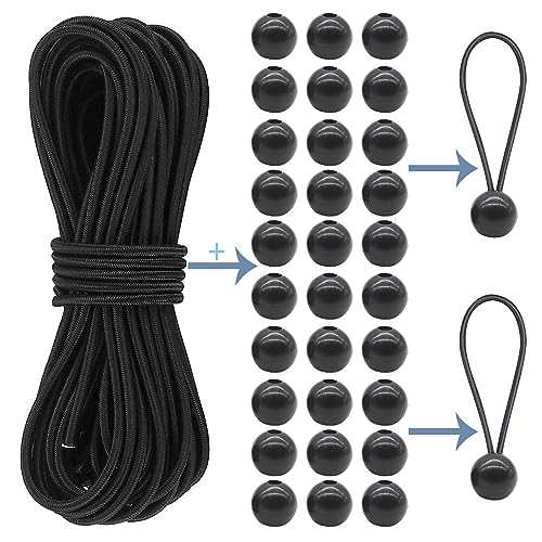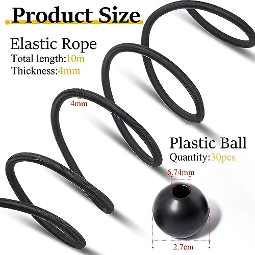 Corde Elastiche con Sfere con 30 Pezzi,Corda Elastica per Teloni,Corde Elastiche di Gomma,Elastici per Tende e Teloni,Nera 4 mm x 10 m Corde Elastiche con Sfere