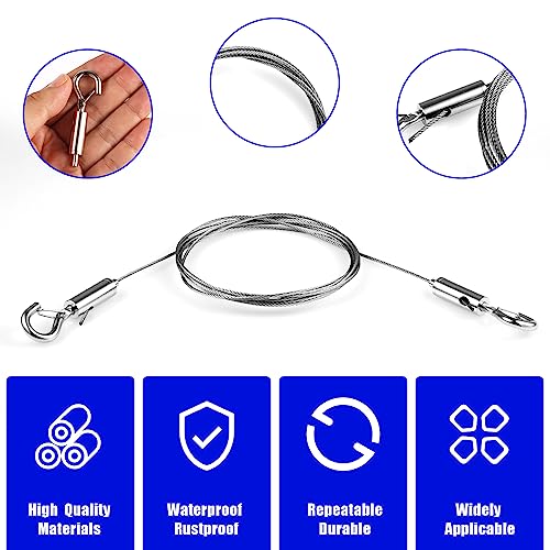 Facile installazione: questi fune metallica sono dotati di ganci su entrambe le estremità e la sua lunghezza può essere regolata manualmente, basta premere la colonna di regolazione nella parte inferiore del gancio e trascinare la corda del filo a mano per regolare facilmente la lunghezza, senzal'assistenza di qualsiasi strumento.