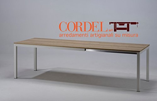 Cordel Tavolo allungabile con Basamento in Metallo Laccato Bianco e Top in Laminato Rovere nodato cm 140x90 allungabile a cm 190 Made in Italy