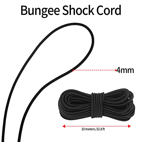 La confezione include: riceverai 1 rotolo di corda elastica nera, che ha un diametro di 4 mm e 10 m di lunghezza e 4 ganci;