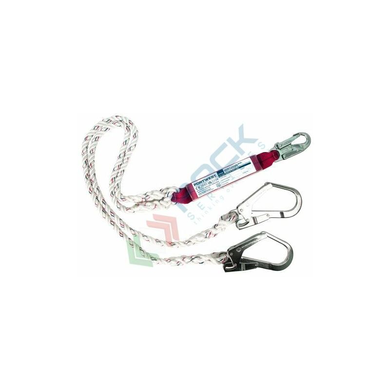 Il cordino a Y ha due corde di 120 centimetri con assorbitore d'energia, due ganci da ponteggio e un moschettone. Lunghezza totale 180cm inclusi i ganci da ponteggio ed il moschettone. Apertura gancio ponteggio da 52 mm Ammortizzante Carico nominale massimo 100 kg Periodo di validità di 10 anni dalla data di produzione indicata nell'etichetta del prodotto Certificato CE Marcato UKCA Scatola di vendita per presentazione in negozio