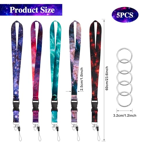 Cordino da Collo 5 Pezzi Cordini Cinghia da Collo con Chiusura a Moschettone Girevole Neck Lanyard Strap per Badge, Chiavi e Cellulare per Donne, Ragazze, Lavoratori, Studenti, Insegnanti