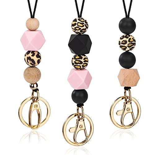 Cordino da Collo 3 Pezzi Cordini Cinghia da Collo Simpatico Silicone con Perline Neck Lanyard Strap per Badge, Chiavi e Cellulare per Donne, Ragazze, Lavoratori, Studenti, Insegnanti