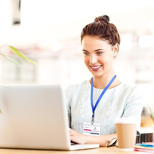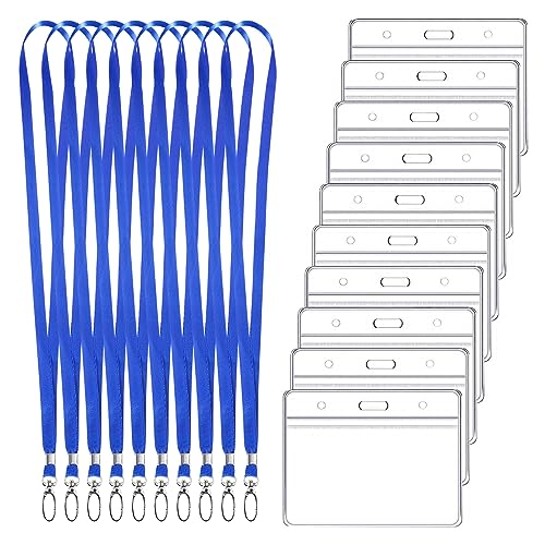 【Porta badge con cordino】Riceverai 10 pezzi cordino da collo blu e 10 porta badge orizzontali, ogni porta carte ha una cerniera sulla parte superiore per evitare che le carte interne si bagnino o cadano.