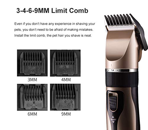 Ampiamente applicabile: Questo cordless USB portatile ricaricabile 5 livelli il taglio dei capelli regolabile kit di montaggio per tutti i cani, gatti, conigli e altri animali domestici pelosi. Se i vostri animali domestici hanno cappotti spessi e lunghi, si prega di fare