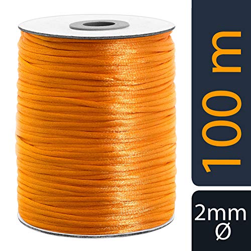 Cordone di raso 100 metri spessore 2mm. Setoso ed elegante. Multiuso, arancia