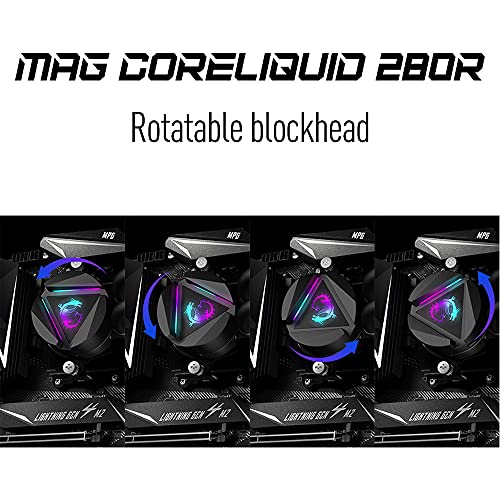 MSI MAG Core Liquid 280R - Dispositivo di raffreddamento liquido CPU AIO RGB, design con tappo girevole, radiatore da 280 mm, doppia ventola RGB PWN da 140 mm.