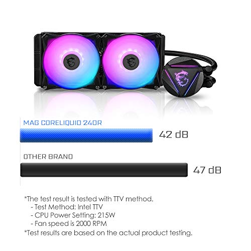 MSI MAG CORELIQUID 240R - AIO RGB CPU Liquid Cooler - Design con cappuccio rotante - Radiatore 240mm - Doppia ventola PWM RGB da 120 mm.