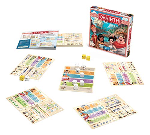 Corinth è un gioco roll-and-write in cui i giocatori assumono il ruolo di commercianti che vendono i loro beni