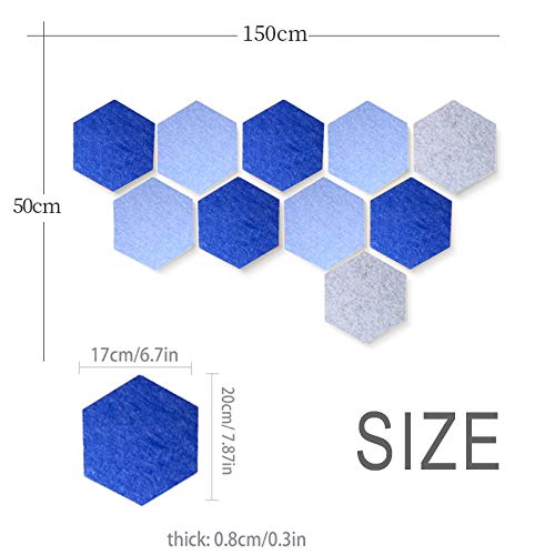 Bacheca in sughero esagonale in feltro: set di 10 con 50 puntine, la dimensione è 20 * 17 * 10 cm, si compone di tre combinazioni di colori. Questo cartoncino decorativo è la scelta più ideale per i bambini come regali di Natale e di compleanno.
