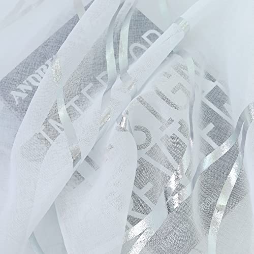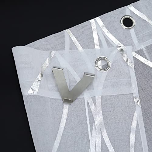 CORLIF Tenda a pacchetto con occhielli, tenda trasparente per la cucina, con stampa onde, in voile moderno, colore argento, larghezza 60 x altezza 130 cm, 1 pezzo