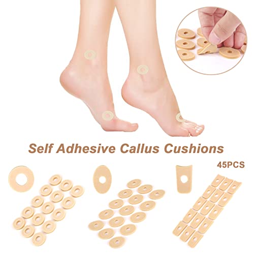 Corn Pads Soft Foam Callus Cushions,U--Shaped Felt Callus Pads, Self Stick Adhesive Toe and Foot Care Protectors-45PCS