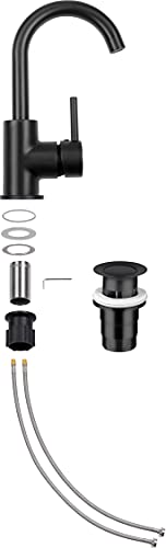 Cornat NERSH1 - Miscelatore monocomando per lavabo, con corpo in ottone nero opaco, montaggio senza sforzo, con valvola di scarico, rubinetto per vasca da bagno, rubinetto per lavandino, NERSH1