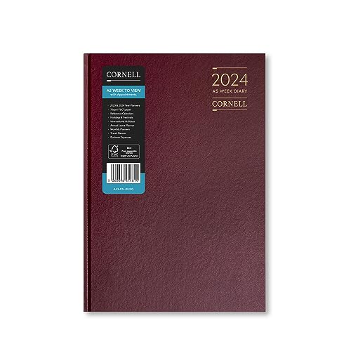 Cornell Agenda 2024 - A5 - visualizzazione settimanale con appuntamenti - ore 8:00 - 18:00 - copertina in similpelle - bordeaux