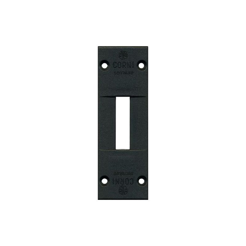 In nylon colore nero Articolo: 02952.03 Per serrature: 970 975 978 950 955 Per profilo metallico: NC40 Misura: 120x40 mm Spessore: 6 mm