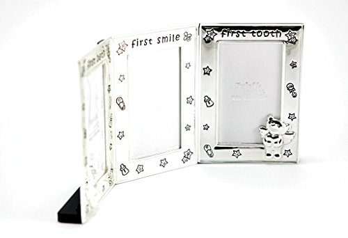 Grazie alla superficie argentata di alta qualità con i motivi assolutamente carini regalerete un sorriso a voi o a quella persona che riceverete. La cornice offre spazio per il primo ridere, il primo bagno e il primo dentino. Tre eventi che non si possono osservare abbastanza spesso