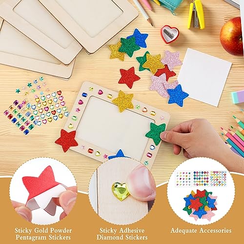 Cornice in Legno Rettangolare 7.5" x 5.5" Cornici per Bambini Artigianato Cornici per Foto in Legno, Cornice da Tavolo, Fai Da Te Cornici con Diamante Adesivo Glitterato per Compleanni Anniversari