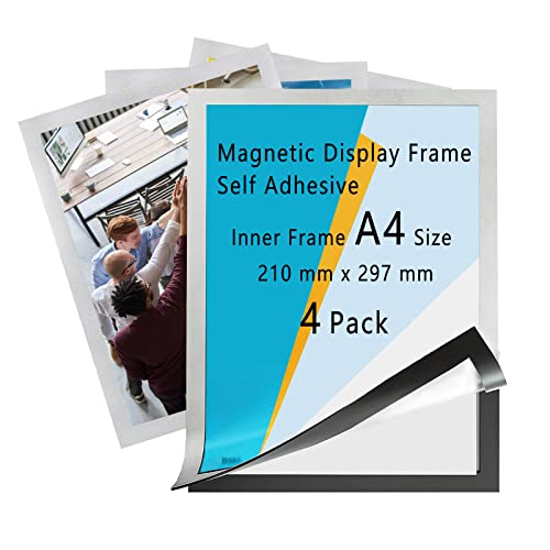 4 x Cornice Magnetica A4, Cornice Autoadesiva, Cornice Espositiva Adesiva, Cornice Informativa Autoadesiva, Cornice Esterna 32,5 cm x 24 cm, Per Negozi, Uffici, Vetrine (Argento)