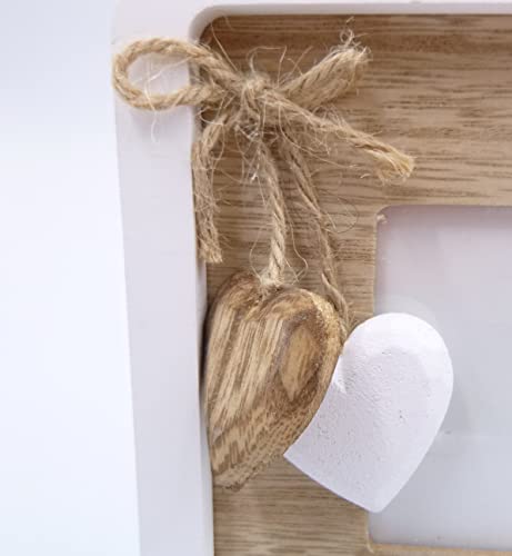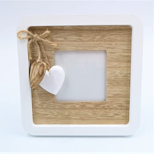 R.G.B. Cornice Porta Foto in Legno con pendagli a Forma di Cuore in Legno (misure 15x15cm - foto 6,5x6,5cm)