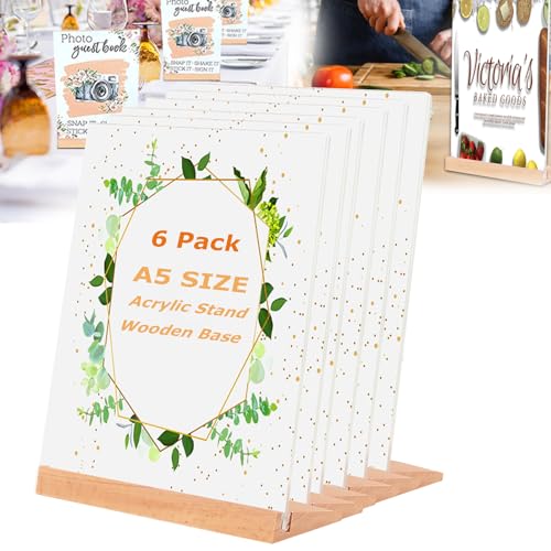 Cornice Portafoto, 6PCS A5 148 x 210mm Espositore Banco Cornici Con Base In Legno Espositore Tavolo In Acrilico Bifacciale Espositore Pubblicitario Festa Matrimonio Matrimonio Bifacciale Ristorante