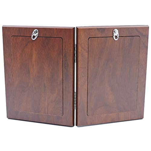 Una cerniera al centro unisce i due telai dei portafoto creando un "effetto libro" che ne rende pratico l'appoggio e gradevole l'accostamento delle due fotografie