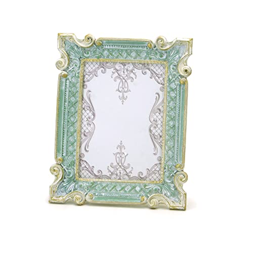 Cornice portafoto Rettangolare Shabby Chic, Cornice da Tavolo o da Muro Stile Provenzale (Verde Chiaro - Foto 20x25)