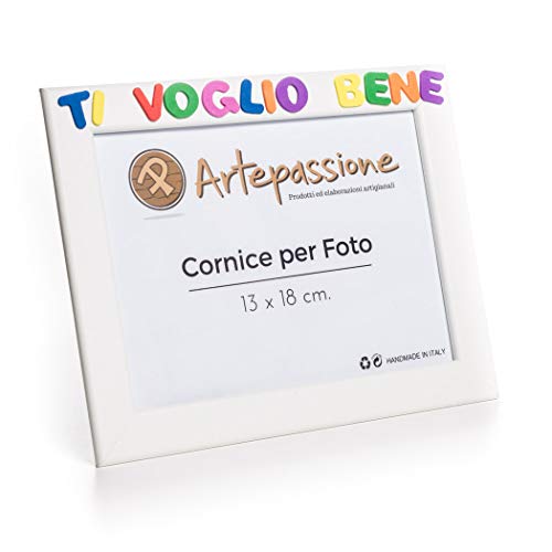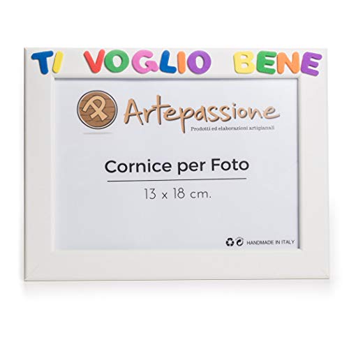Cornici per foto in legno con la scritta Ti Voglio Bene, da appoggiare o appendere, misura 13x18 cm Bianca. Ideale per la famiglia o per regalo.