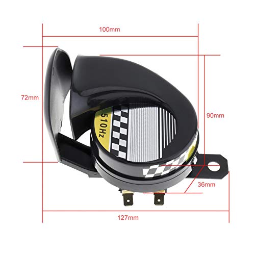 Ampia applicazione: Il clacson a chiocciola per auto è adatto per automobili, camion e altri veicoli DC 12V, che è universale per la maggior parte delle motociclette, go-kart, dirt bike, pocket bike e auto automatiche con una potenza di 12V.