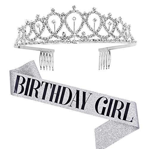 Corona d'argento Corona diadema di cristallo con fascia da ragazza di compleanno Accessori regalo per feste da compleanno Kit fascia da diadema con strass e decorazioni per feste Argento